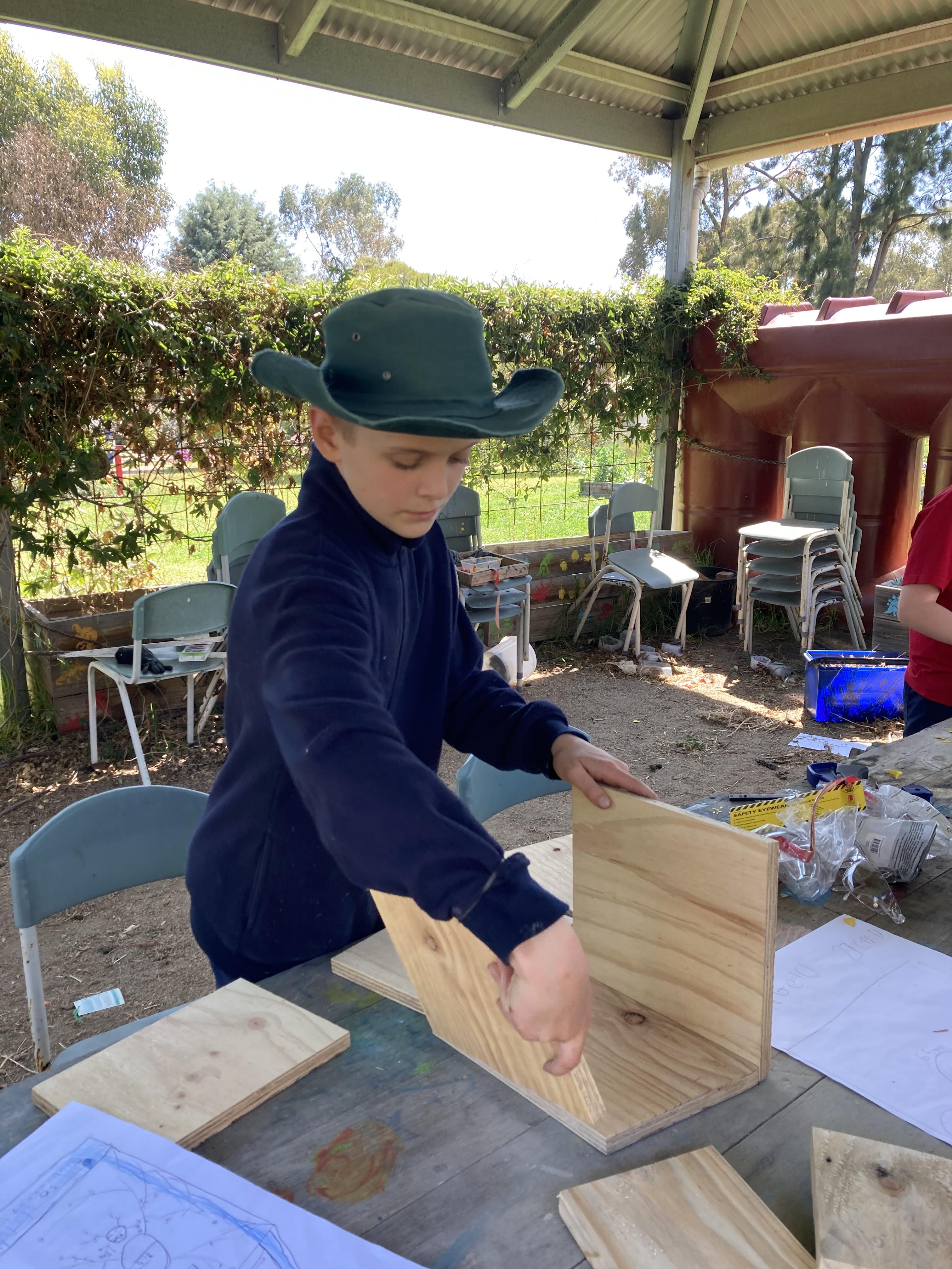 One of their projects was to research the types of birds that call Heathcote home, design an appropriate nesting box and construct it. The Men's Shed provided the wood and cut out the pieces using student designs. The McIvor Times published an article about the project.